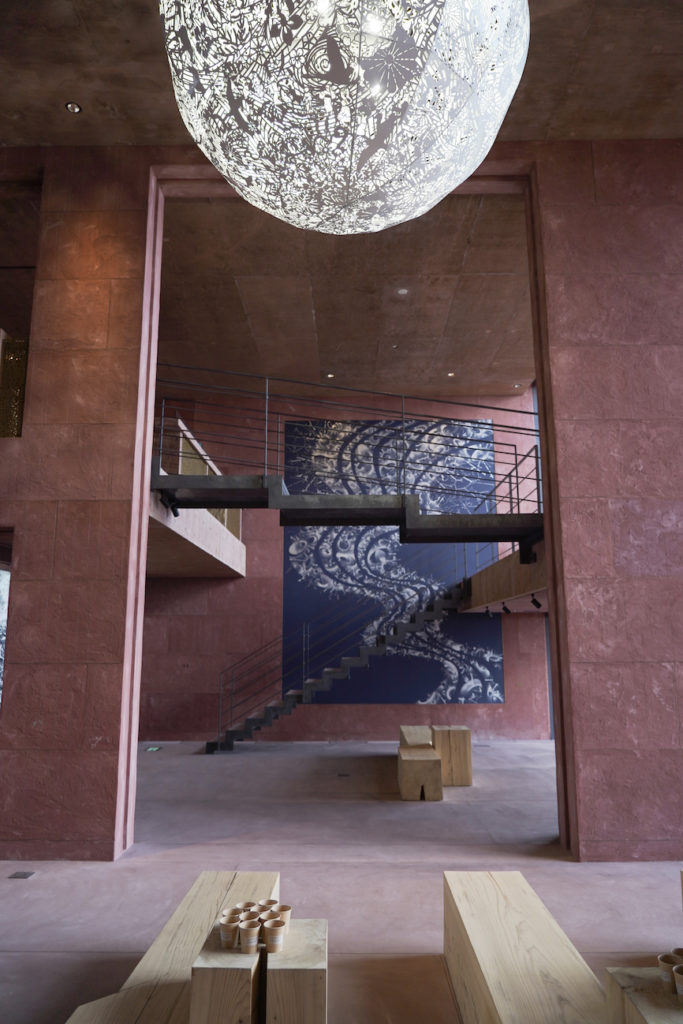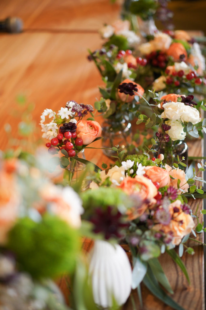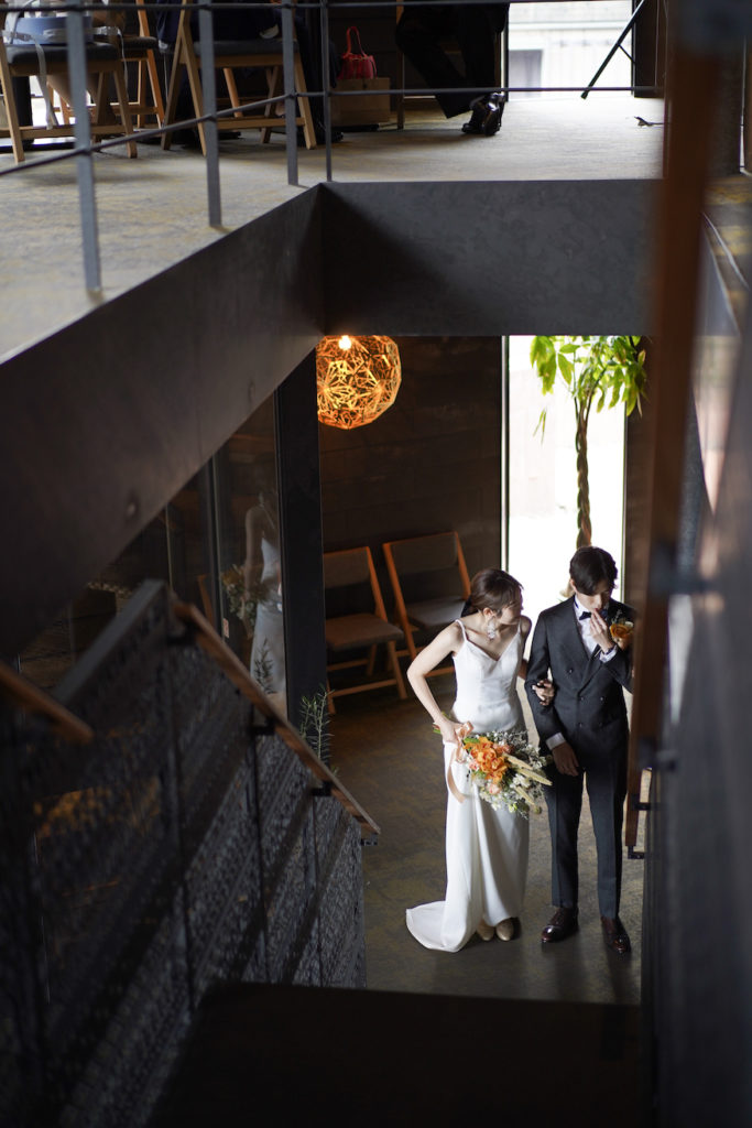 披露宴は宿泊棟の隣にあるレストラン”The Peak"。こちらのレストランは二階建ての造りとなっております。2Fフロアのみ、もしくは1F/2F両フロアご利用でも披露宴が可能でございます。空間をつなぐのは会場中央にある階段。今回は2Fフロアのみを会場として使用したため、入退場の際のみこちらの階段を使用しました。