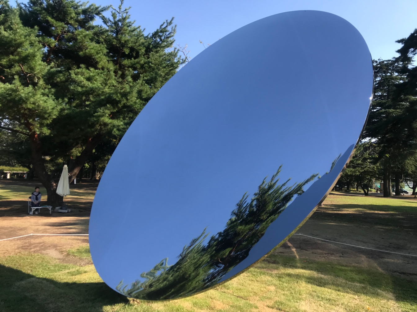 こんにちは。先日別府公園で開催されている「アニッシュ・カプーア in 別府」に行ってきました。この日は時間がなかったのですが、どうしても屋外展示のスカイミラーを晴れた日に見たくて、急遽立ち寄ることにしました。屋内展示(有料)も展示終了までに必ず行こうと思っています。ちなみに11/25までやっております。
